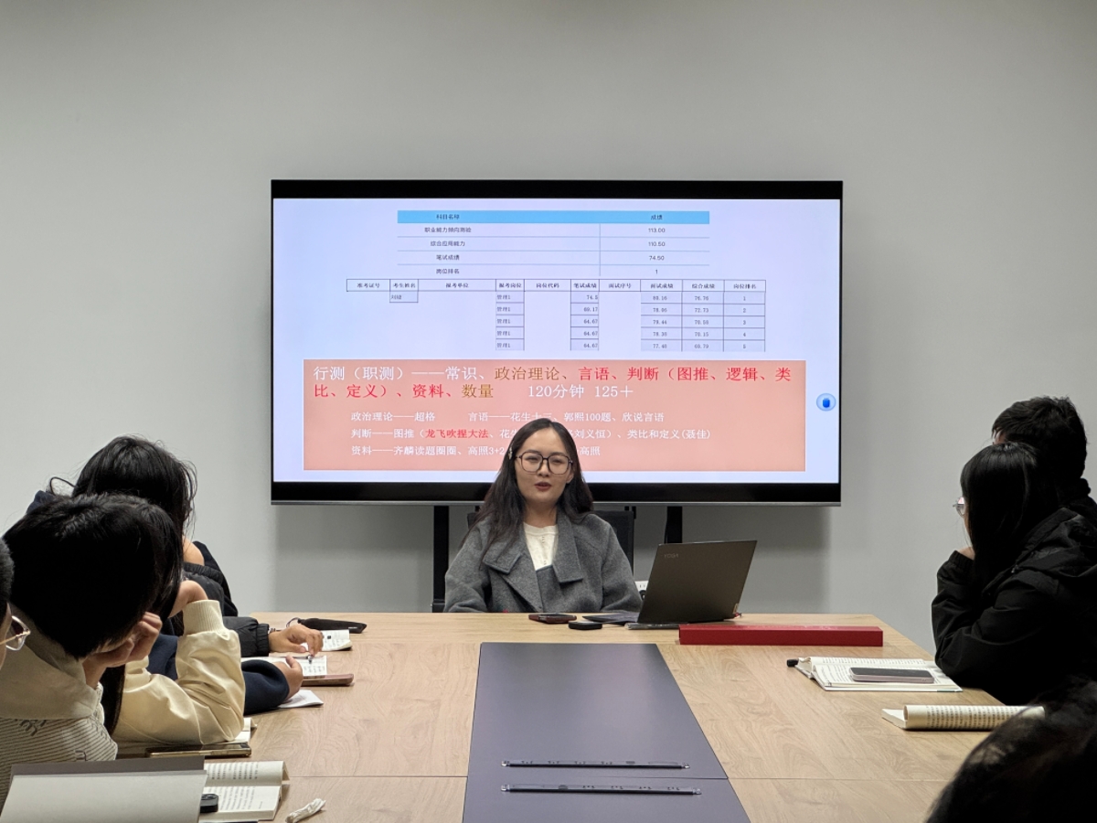 “考公是一场综合素质的全方位比拼”。公务员考试不仅考查学生的专业知识能力,还注重学生的逻辑思维、语言表达等能力,在备考的过程中我们要多关注时政热点。她指出“申论是考公的关键科目”,申论考试要求学生能够准确且快速把握材料的核心观点,并结合具体问题和所给材料提出合理的解决方案,因此建议同学们在学习的过程中要多注重对材料的阅读理解能力和分析能力的学习,同时需要注重对题目时间的分配能力。