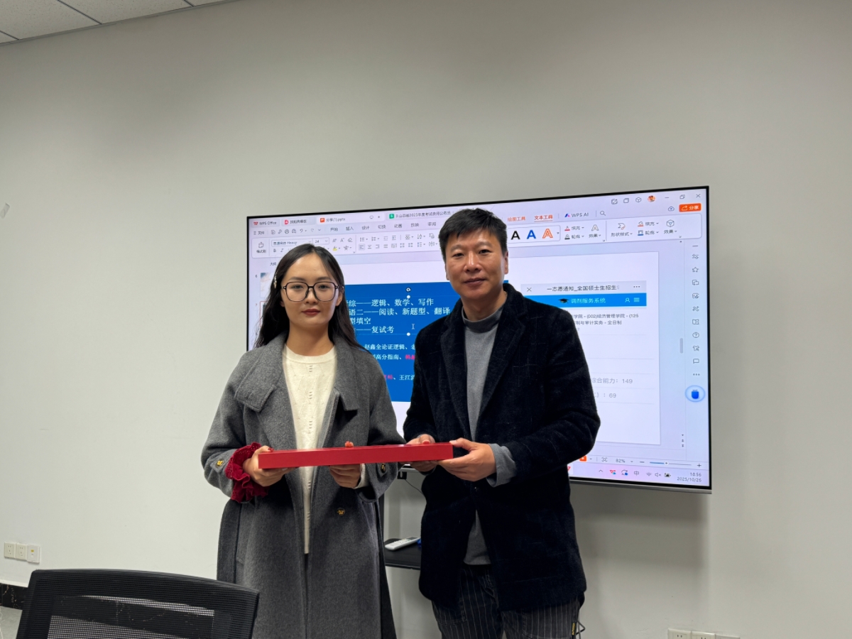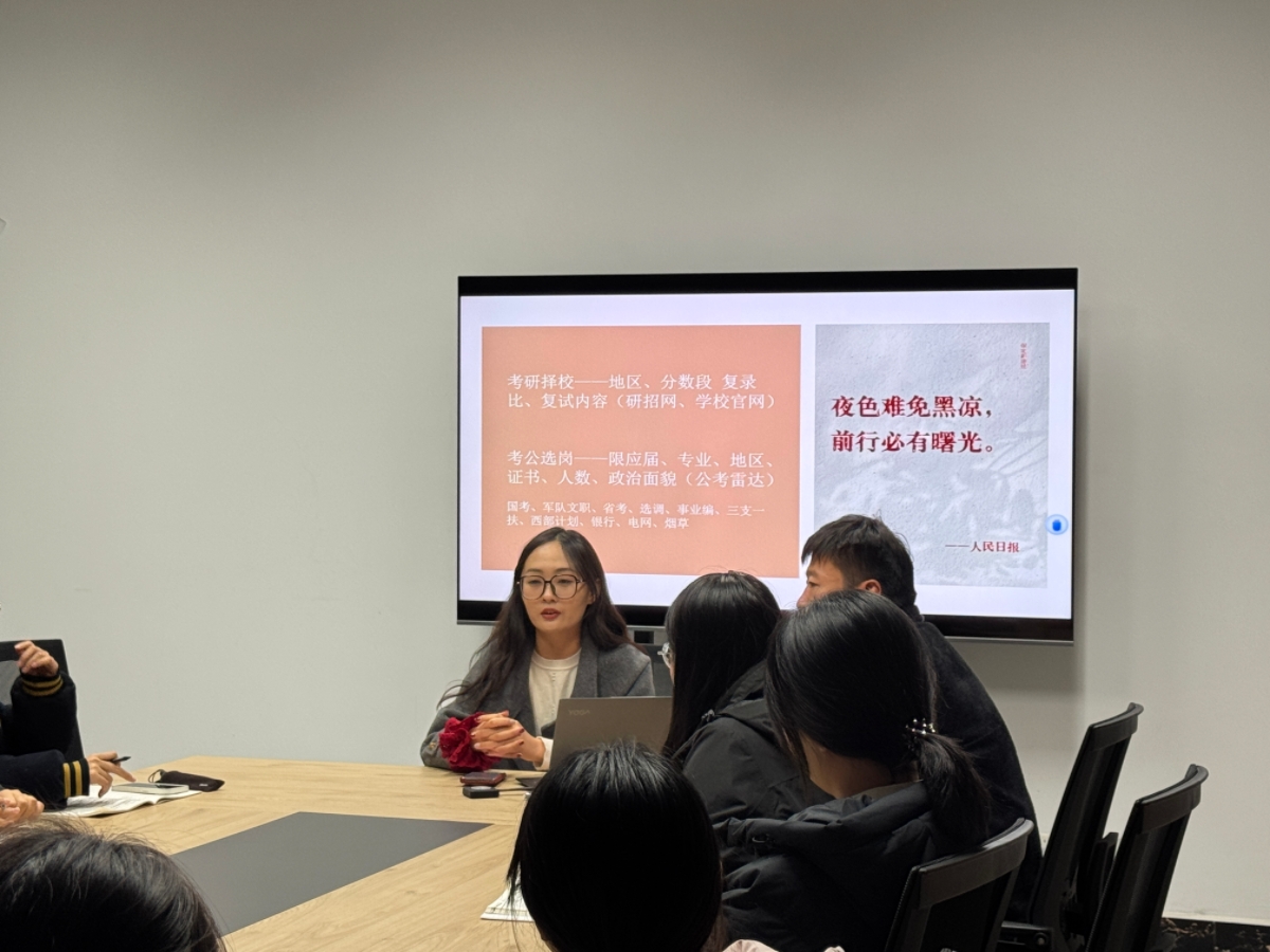 在当今竞争激烈的社会环境中,考研与考公成为诸多大学生毕业后的选择,也是众多学子追求梦想的途径。淬炼商学院·国际商学院辅导员张振国老师于10月26日18:00-19:00在7号教学楼217举办了以“考研考公经验分享”为主题的校友活动。本次活动邀请到2022届毕业生刘婕,曾就读于北京印刷学院会计专硕,2025年应届毕业生考取阳泉住建局事业编,为备考同学提供宝贵的学习经验指导,帮助同学们更好地应对接下来的考试以及未来的挑战。
