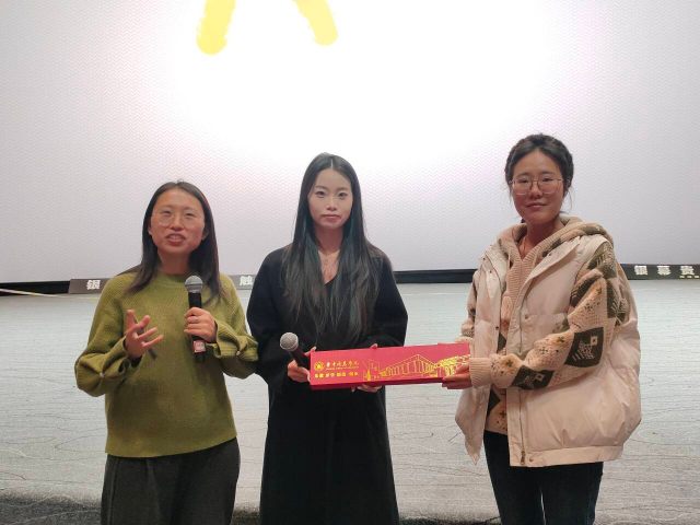 分享尾声,营销2301班学生姚佳伶代表全体在场同学,向宋欣冉学姐送上精心准备的纪念徽章。她满怀真诚地说道:“学姐的分享干货满满,每一句财务职场心得都极具价值,我会把今天学到的智慧牢牢记在心里、切实落实到行动中。”